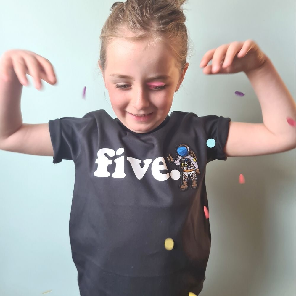 Our children’s birthday t-shirts are made to be worn during exciting, fun-filled parties—whether that means cake-eating, jumping, or running around in a soft play centre.