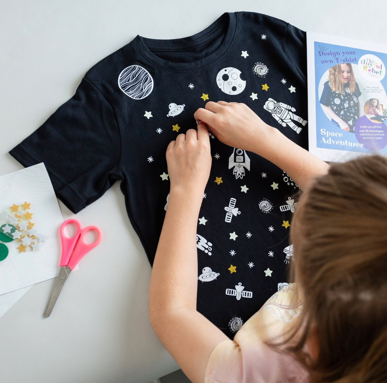 Our Design Your Own Craft Kits are perfect for creative kids, tweens, and adults. These DIY kits are packed with colourful vinyl shapes and materials to customise t-shirts, bags, or clothes at home no-mess, just joyful creativity!
