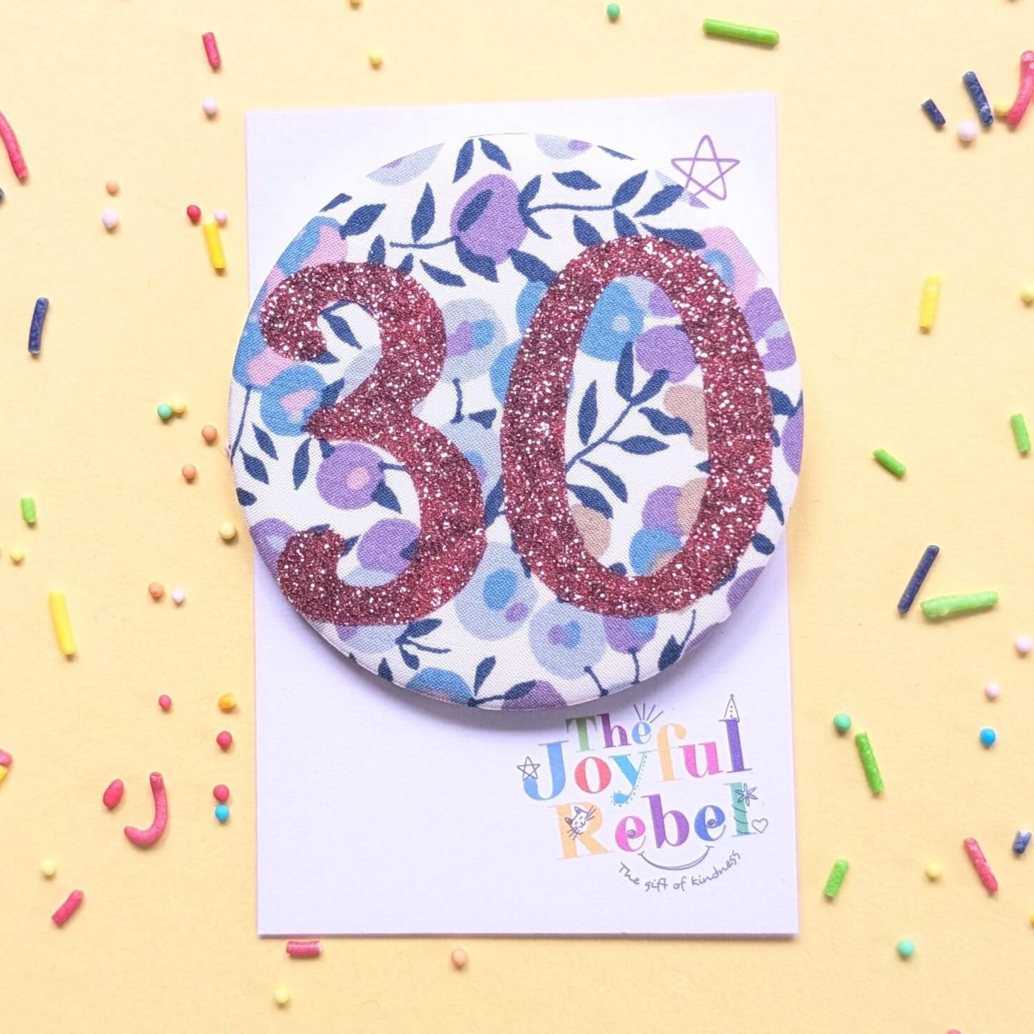 Is your bestie turning 30? Celebrate in style with a personalised 30th birthday badge! Made to order, our custom age badges add a fun, sparkly touch to their milestone birthday. The perfect keepsake and party accessory for embracing the flirty, thriving thirties—a great gift from friends or family!