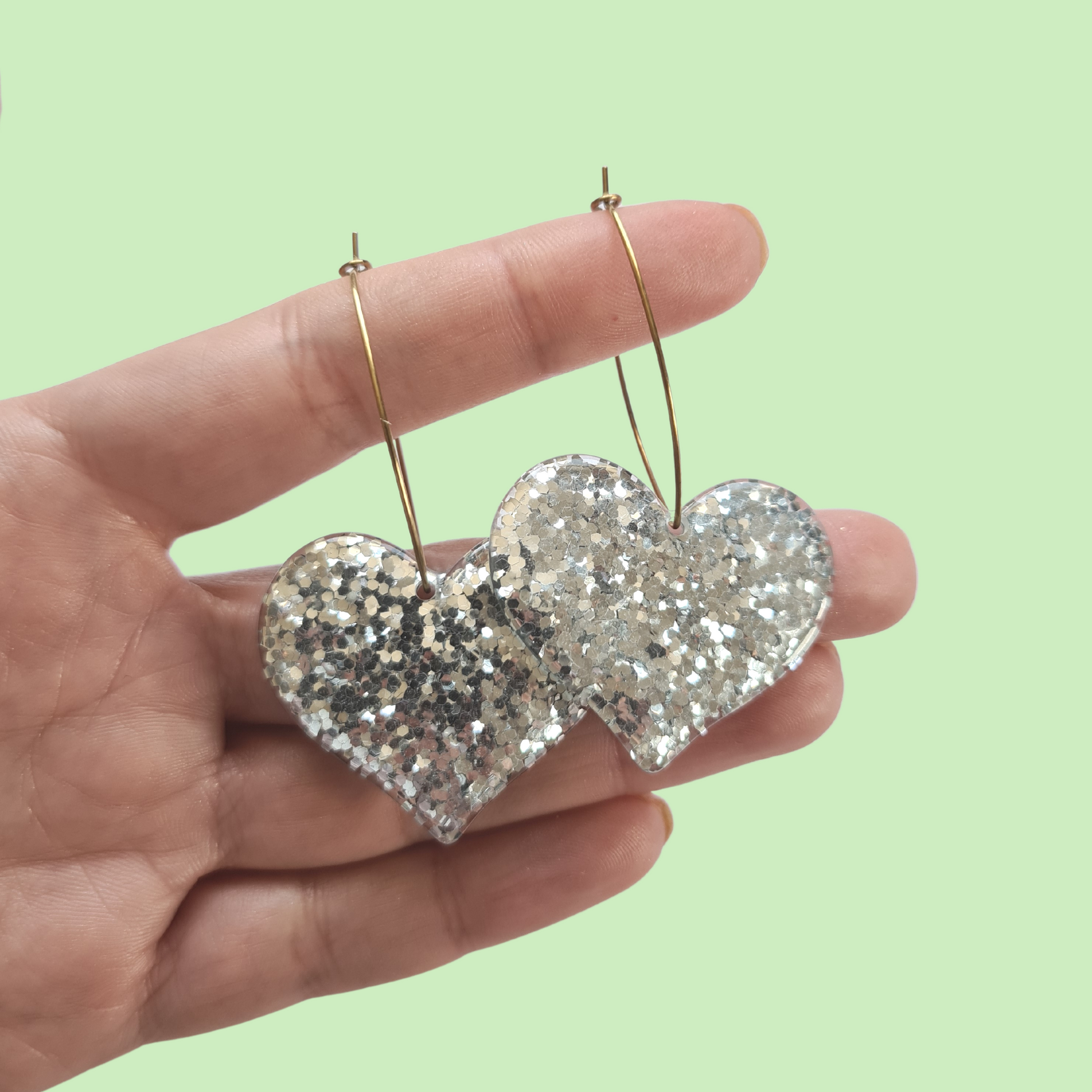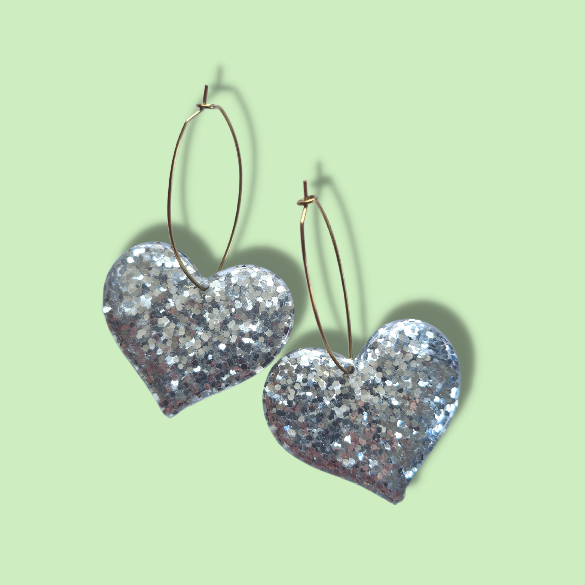Glitter Silver Heart with Brass Oval Hoop