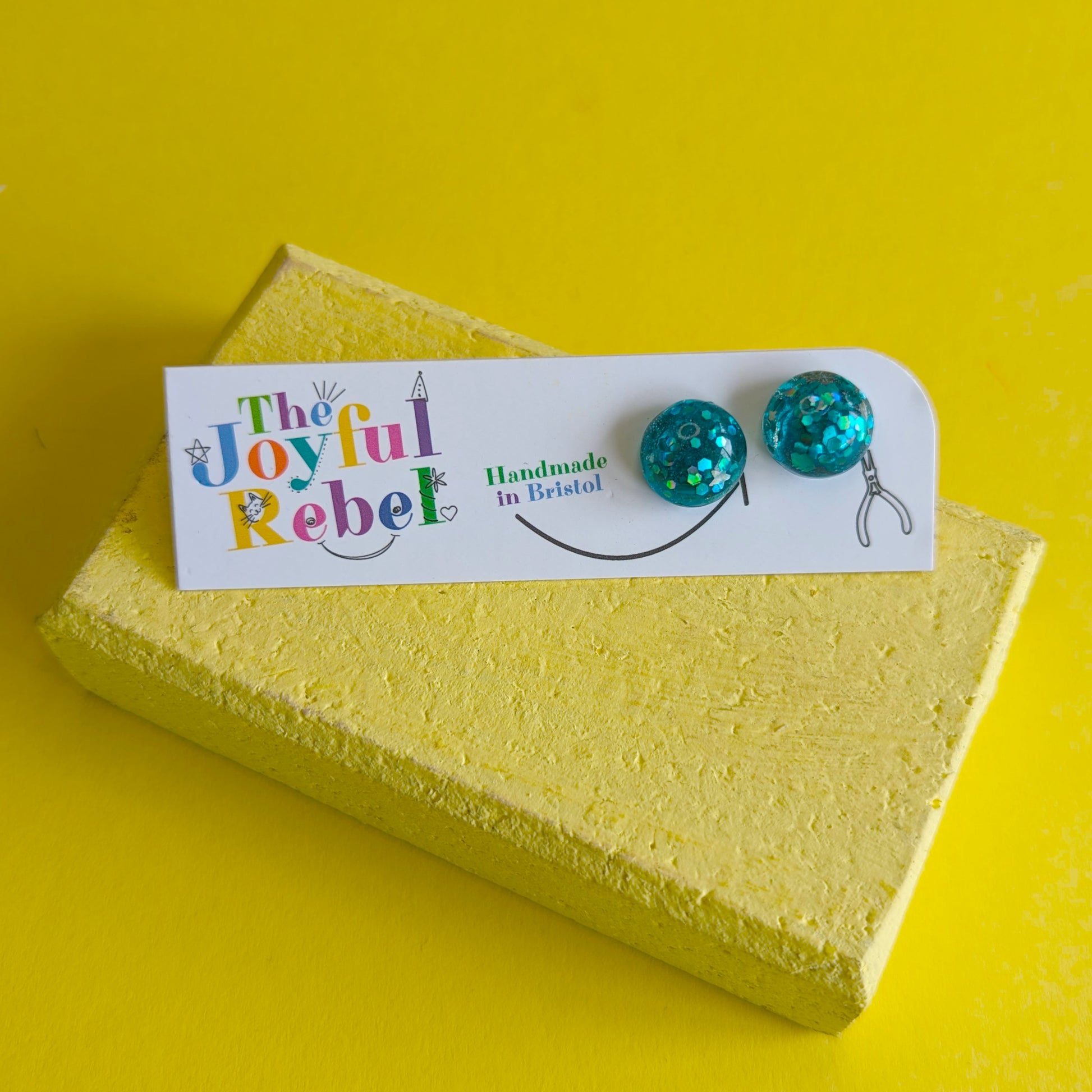 Glitterball Turquoise Resin Stud Earrings - 12mm