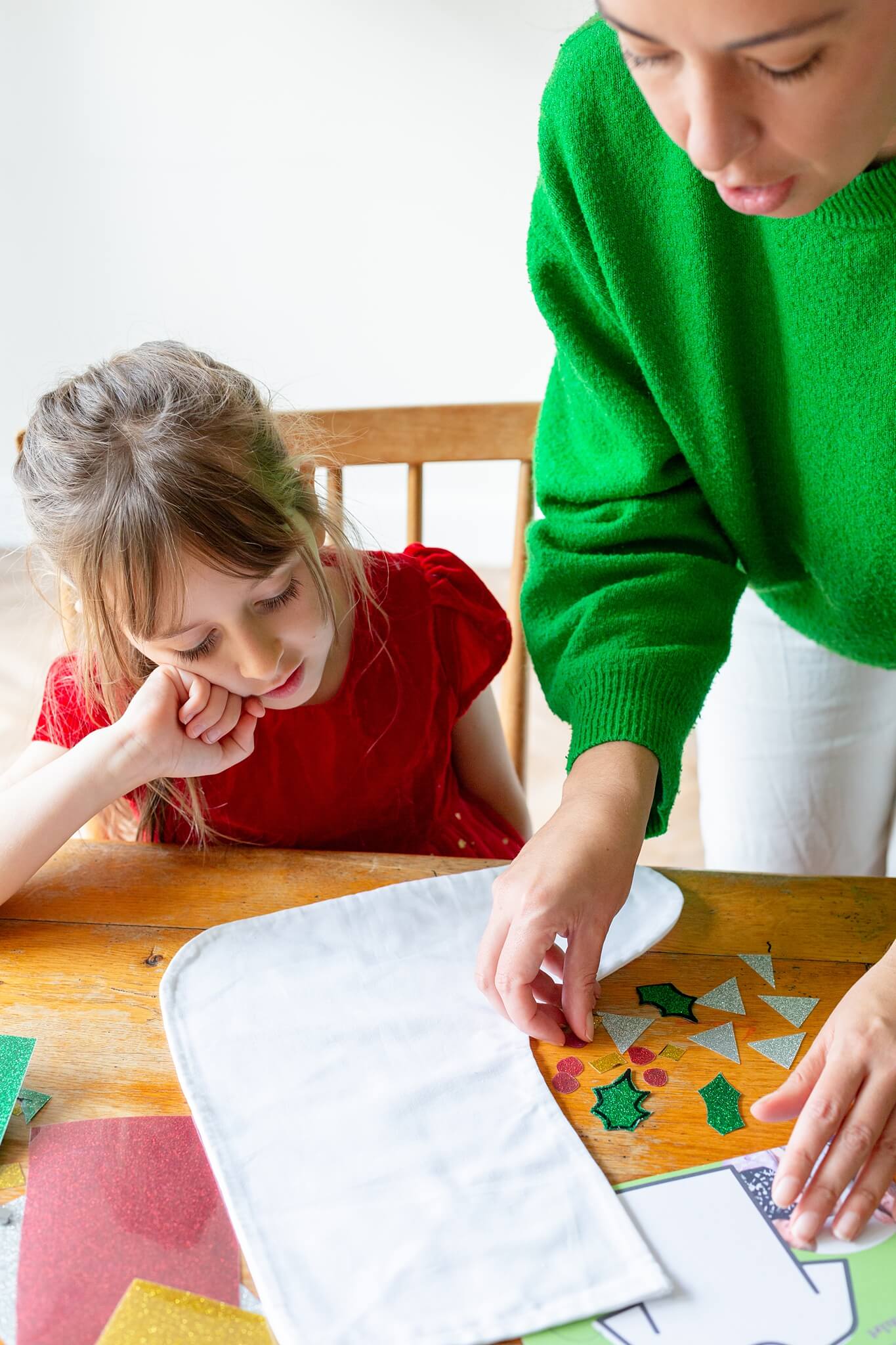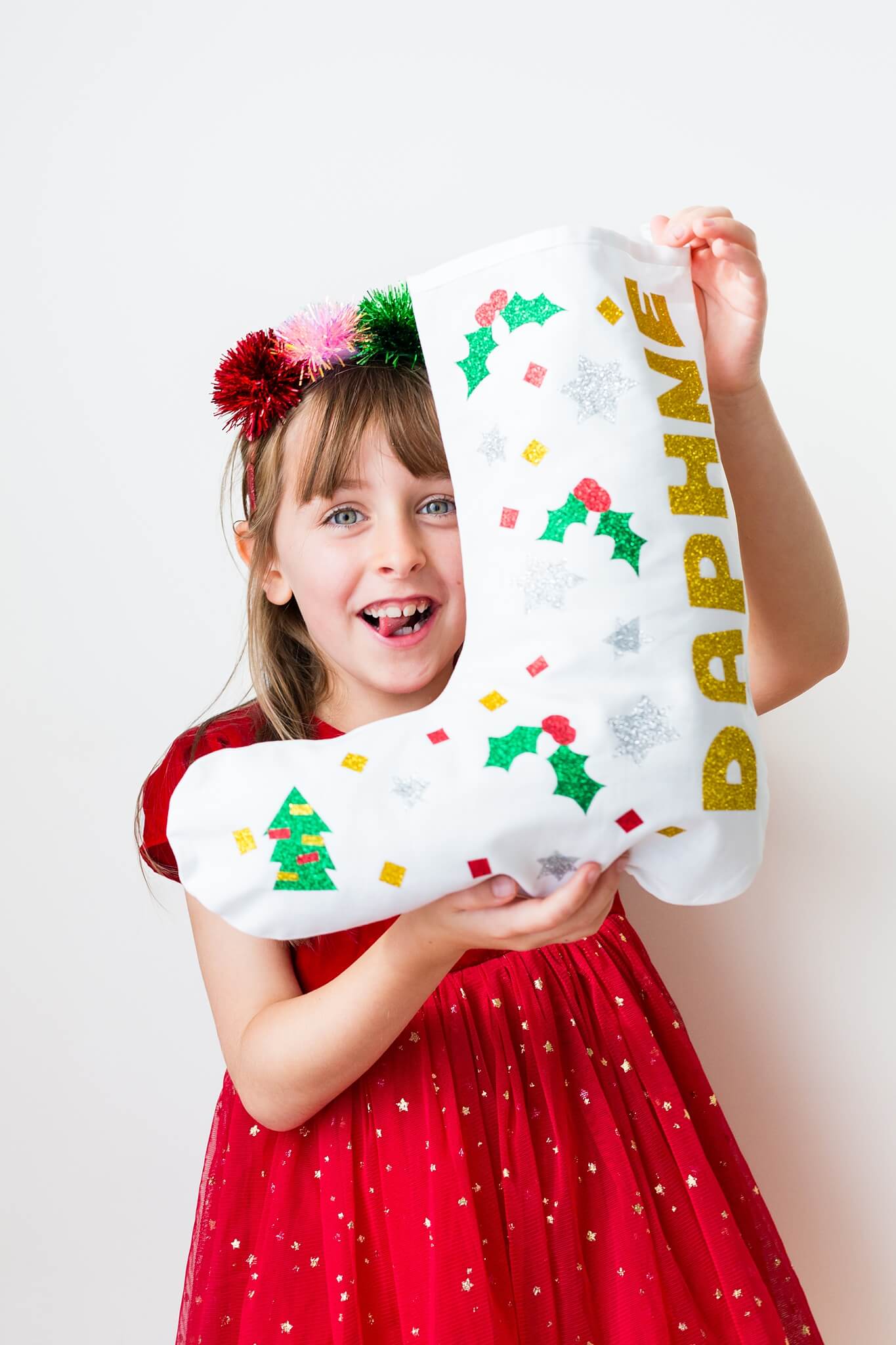 - Glitter vinyls cover both sides of the stocking.
