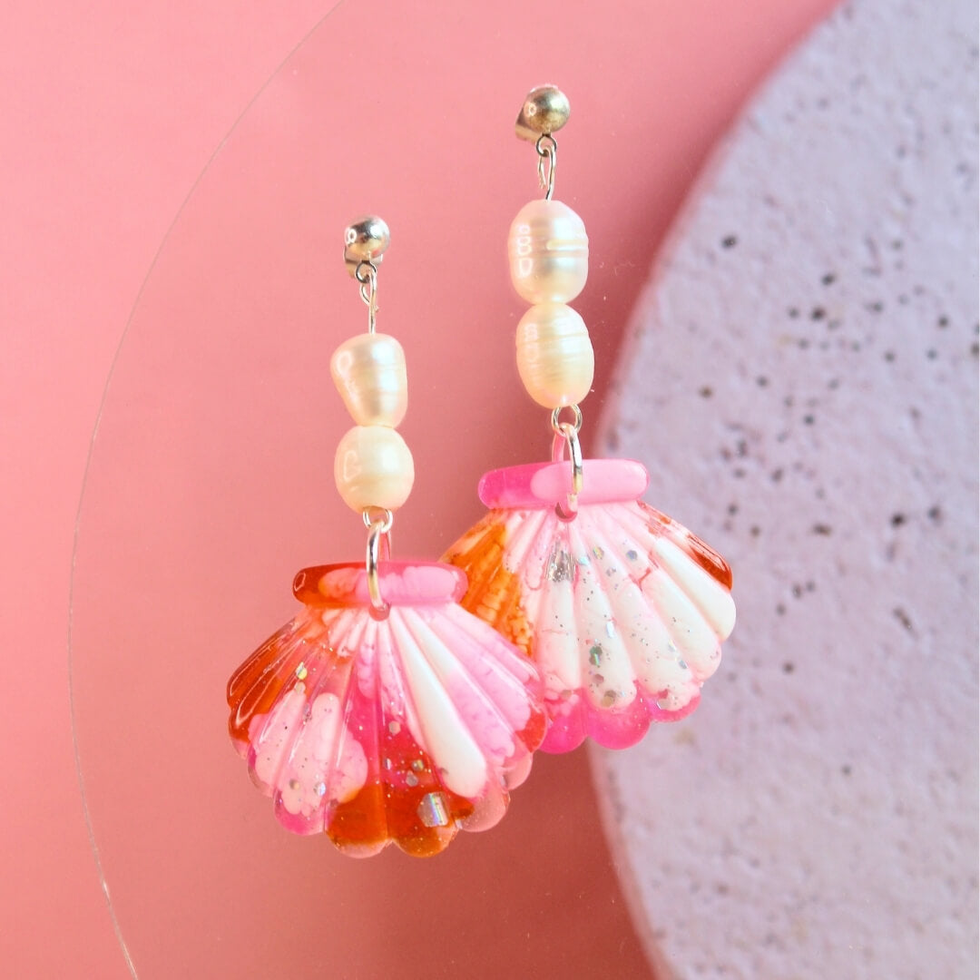 Shop our Pink Scallop & Freshwater Pearl Earrings today and carry the colour of the coast wherever you go!