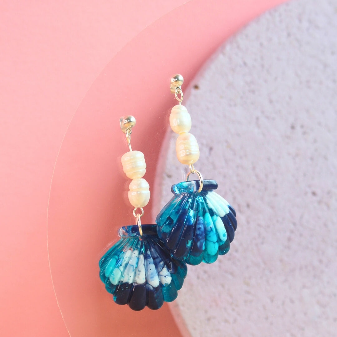 Add a touch of ocean elegance with our handcrafted Blue Scallop Dangle Earrings – featuring shimmering resin scallop shells and delicate freshwater pearls. Each pair is thoughtfully designed to bring a sense of calm coastal beauty to your everyday style.