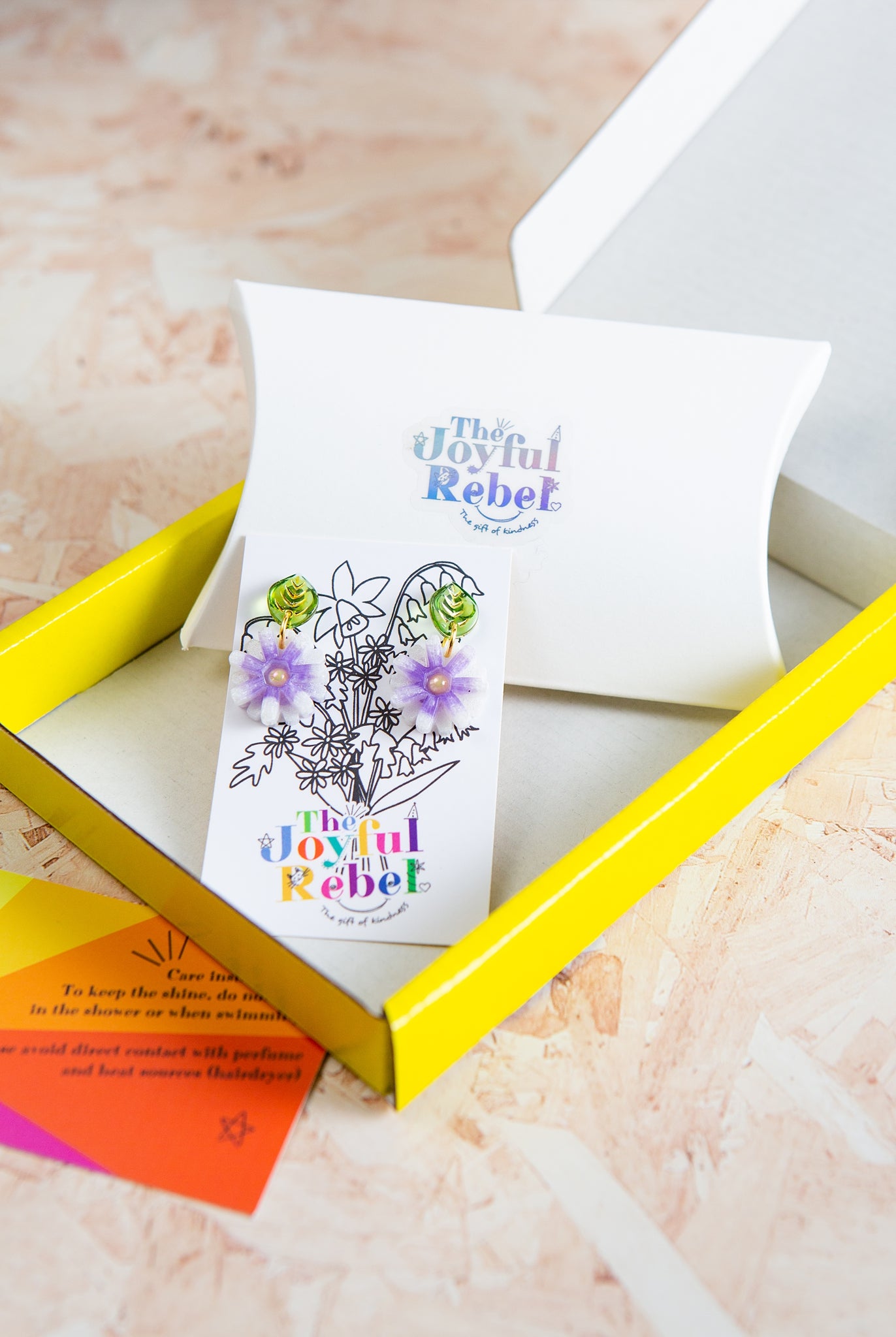 Celebrate spring with our handmade floral resin earrings, featuring delicate daisy, bluebell, and snowdrop designs. These nature-inspired, eco-friendly earrings are perfect spring jewellery gifts for women who love botanical and wildflower styles. Lightweight and vibrant, they make ideal flower drop earrings and unique gifts for nature lovers.